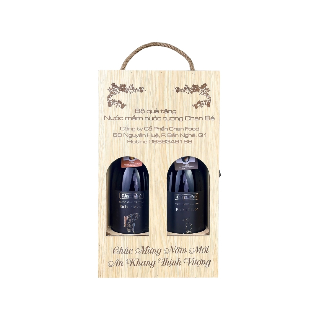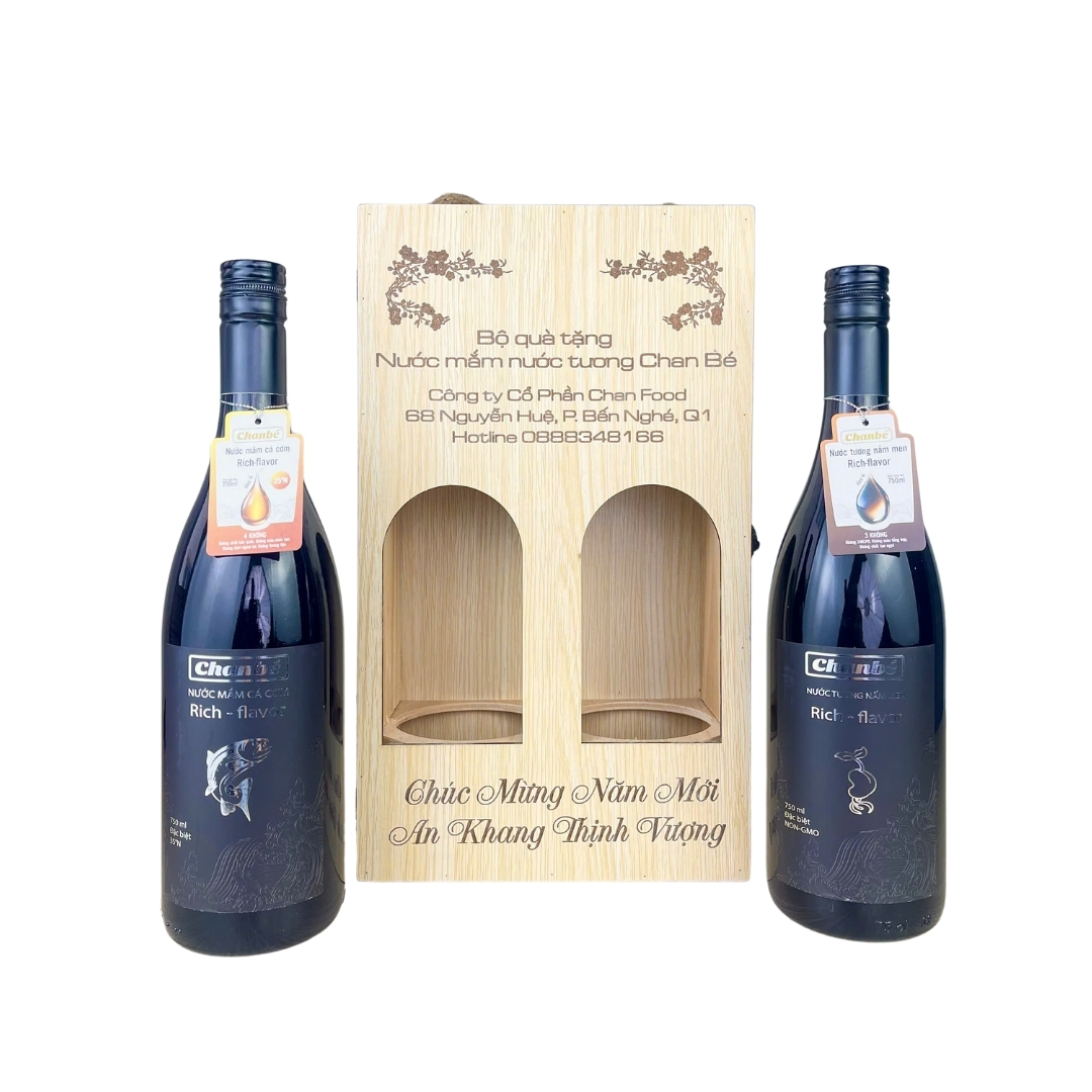 Bộ Đôi Nước Mắm Và Tương Cao Cấp Chan Bé 750ML [Hộp Gỗ Quà Tặng Khắc Theo Yêu Cầu]